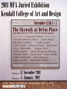 at Kendall College of Art & Design, of Ferris State University will be hosting graduate student artworks from Michigan colleges and universities. One of my pieces will be in the exhibition at Gallery 114. Opening reception and awards ceremony March 18th 6-8pm. Exhibition runs March 17-30, 2011.