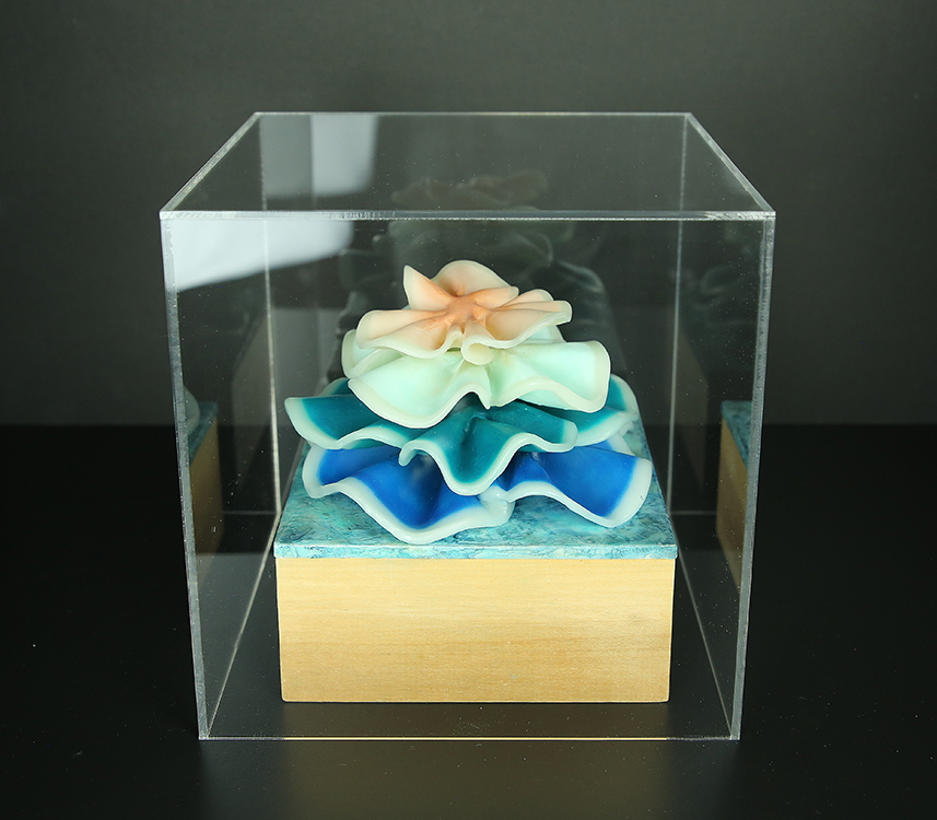 Inspired by a type of cabbage coral named Sinularia Dura. Ocean View is a full-color version of a healthy cabbage coral on the ocean floor. This re-imagined encaustic beeswax sculpture represents the preciousness of these organisms that are worth conserving and protecting for future generations.