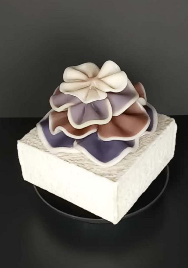 Echoes of the Seabed presents a quiet dialogue between texture and form, capturing the essence of a cabbage coral resting on the ocean floor. The piece anchors itself with a white and cream birch base, its rough surface evoking the rugged seafloor that supports delicate marine life. Rising above, a sculptural bloom unfolds in smooth layers of soft pastel hues—cream, lavender, mauve, and muted reddish tones—each petal carefully shaped to suggest both fragility and resilience. The tiered arrangement creates a sense of natural rhythm and balance, inviting viewers to consider the subtle complexity of underwater ecosystems. Free Shipping and clear acrylic case included. Checkout the Instagram reel video.