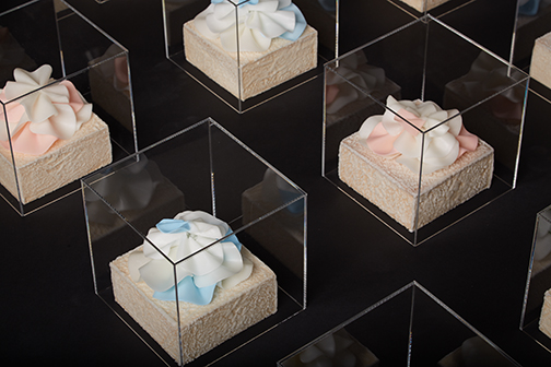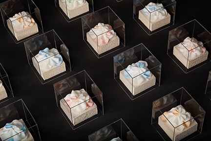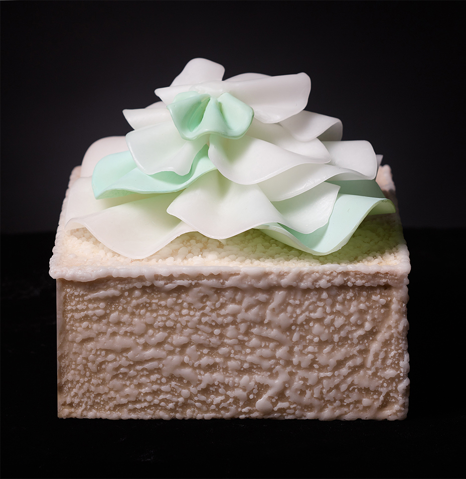 Inspired by a type of cabbage coral, Sinularia Dura represents a stress process called “bleaching” that is affecting the world’s reefs and threatening underwater habitats. By contrasting full-color healthy leaves next to unpainted “bleached” leaves, it serves as a visual warning for the degradation happening at the bottom of the world’s oceans.![]()